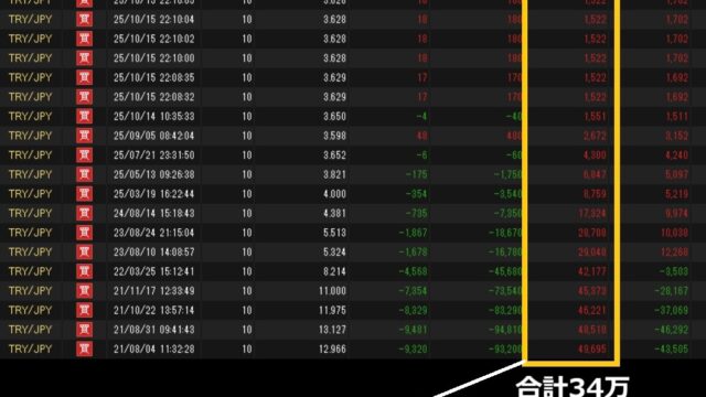 トレードスキル トルコ円|スワップ受取と買い増し 2025年12月7日 ぶせな 2021年8月からスタートした、トルコリラ/円のスワップ投資。1枚(1万通貨)から始めて20枚まで増やしました。34万まで貯まったスワップを全て受取りました。 【前日のポジシ …