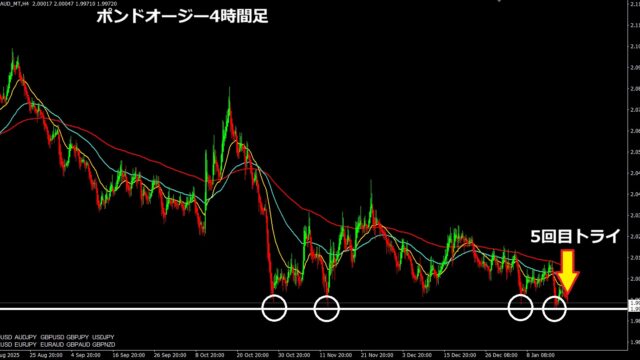 毎日収支 1/2(金)~1/6(火) プラマイゼロ 2026年1月7日 ぶせな 2日はノートレ。 5日はドル円がロング目線。アジアでロングし、これは前の記事で書いた通りなんだけど、書いているそばから下げてきて、A(下記チャート)を下抜けて両建てしたかな。Bま …