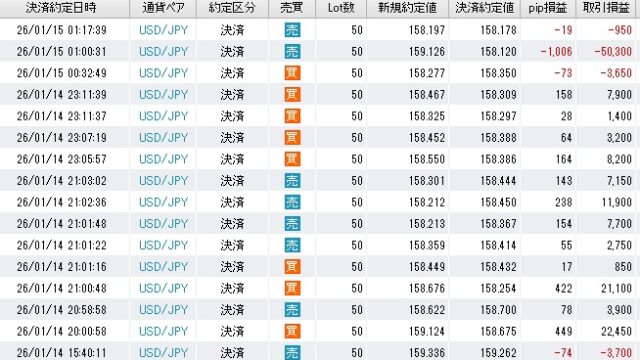 毎日収支 1/12(月)~1/13(火) +2.8万 2026年1月14日 ぶせな 月曜はノートレ。 ドル円の高値更新を期待してロングしなくてよかった。 火曜は、ドル円が安値切り上げてて仲値後に高値ブレイクしそう。ロングして外出。ロンドンまでかかるかと思っ …
