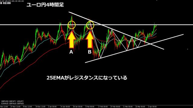 チャート分析 移動平均線で引くレジスタンスライン 2026年4月9日 ぶせな クロス円が上昇しています。 イラン関係のヘッドラインで相場が動くので、テクニカルは頼りにならない気がしてしまいます。しかし、チャートを見ると、テクニカルも機能しています。ユーロ円 …