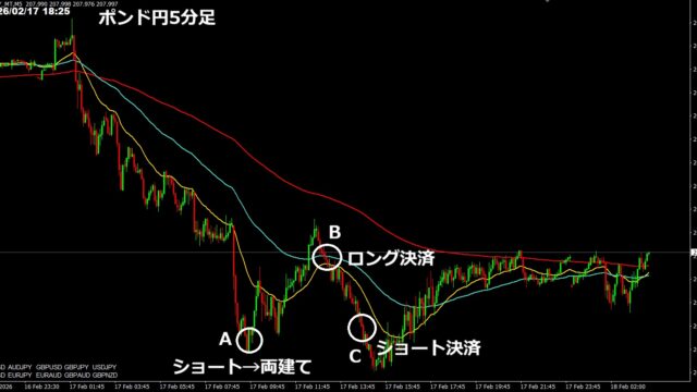 毎日収支 2/5(木) +6万 2026年2月6日 ぶせな 【FX +2.6万】 アジアは待っていた豪ドルが動いたので、オージー円でスキャルピング。出だしで戻り売りが捕まった(下記チャートAの箇所)。ここからもみ合いで待て …