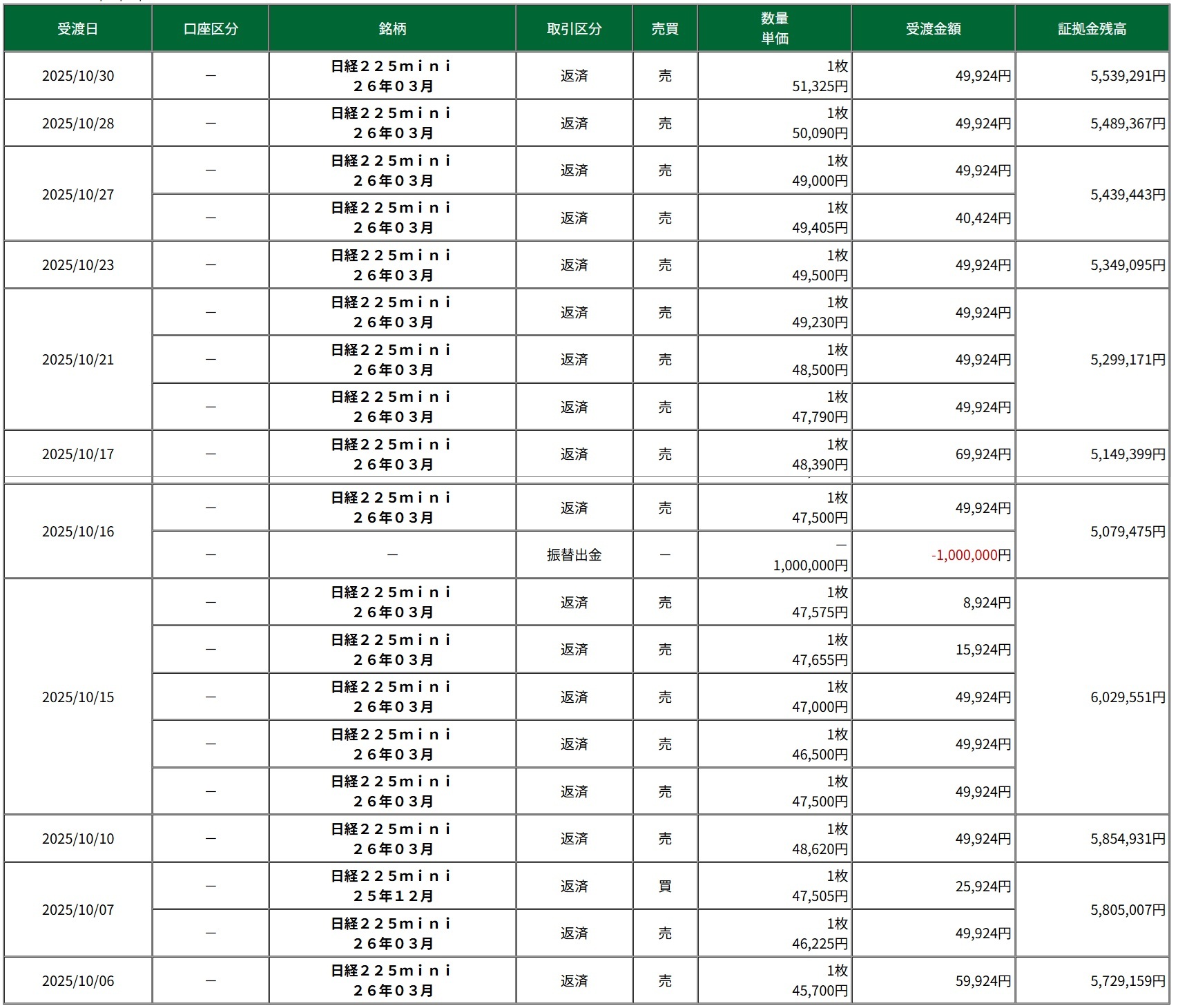 10/10に含み損が-100万近くになっていたので、そこからの損益変動がすごいわ。リスキーだけどマイクロじゃ少なすぎるしなぁ。今月は上昇しているので利益になるのは当然で、次の暴落までに利益を積み上げておきたい。