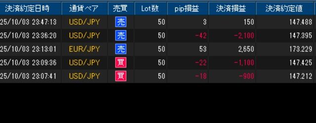 ドル円、ユーロ円、ポンド円で入ってなんとか利益。