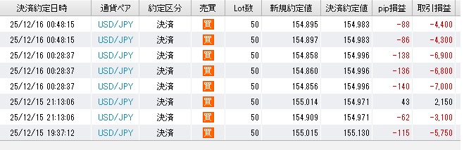 ドル円が下げているが、ロンドンまで待つものの100pipsも値幅出てる。155円割れを期待してショート回転するが、ニューヨーク24時まで連敗(下記Aの箇所)。。下げずにもみ合いか。