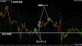 毎日収支 PR 1/30(金) +3万 ぶせな 2026年1月31日 ドル円、153.00円で反発すれば上目線。アジアから上げそうなので入ったが、すぐに上げてきて仲値で利食い(下記チャート)。それからロンドンでも2回目ロングするが、月末だし急落やら何があるかわからないので早期利食い。 フィックスは、スキャルピングで待機していたが急騰・急落もなくノートレと、デイトレードだけで終わり。今週は忙しかったな。 2026年1月 +55.3万