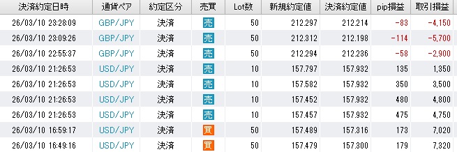 ドル円ショートは、ロンドンで下がった時に利食いしてスクエアに。気持ち的にすっきりして、ニューヨークまで小ロットで手持ちぶさたトレード。23時前後にポンド円をロングするも3連敗した。。ここから値幅出ないか。