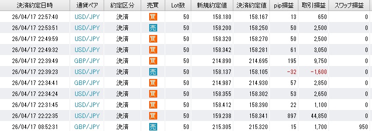 ショート回転は合っていたが、大きく取れるわけでもなく利幅が少ない印象。せっかくのチャンス相場だが、終わってみるといつも大胆なトレードができないな。